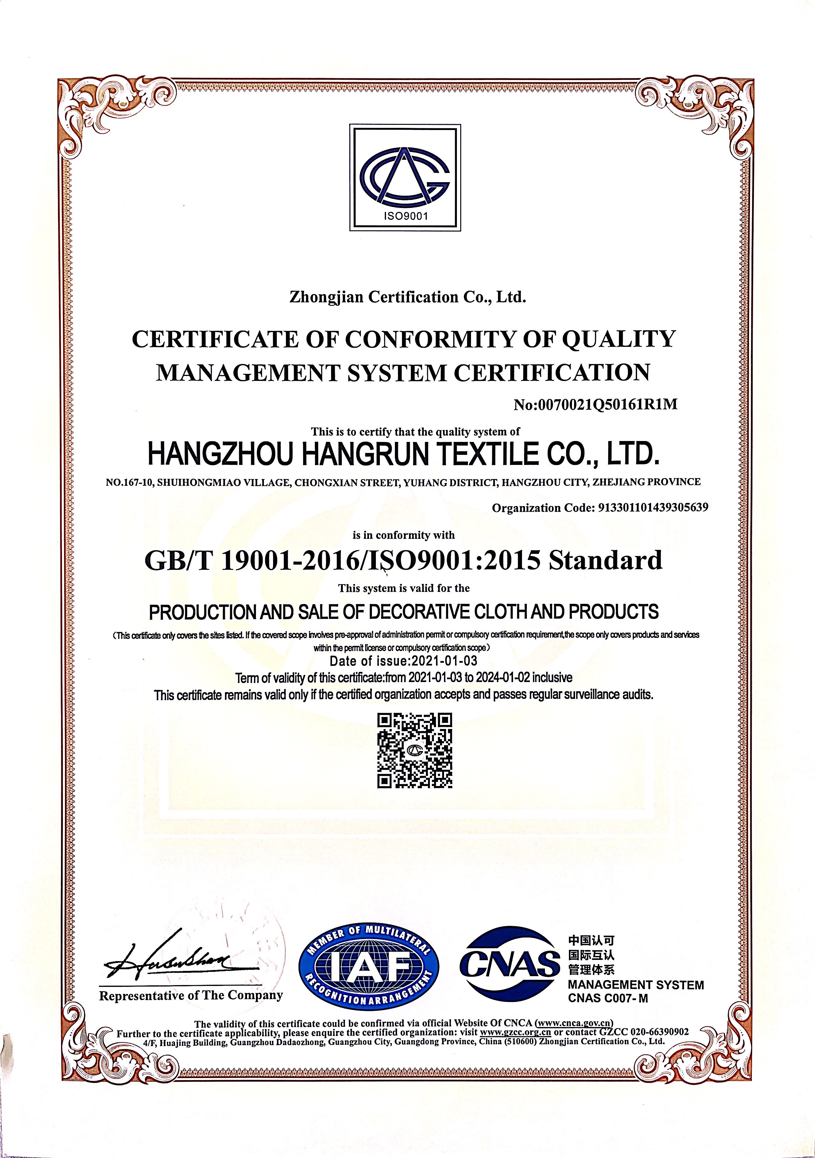 Hangzhou Hangrun Textile Co, Ltd was founded in 1994. After more than ten years of development, the company is currently engaged in the production of indoor fabric decorative products,including upholstery & furnishing fabrics, curtains, cushions, throws,table runners , placemats, rugs , etc. As a large scale enterprise in this industry, it integrates product design, production and sales, boasting the annual output of 6 million meters of upholstery fabrics,, mainly exported to European and American market.